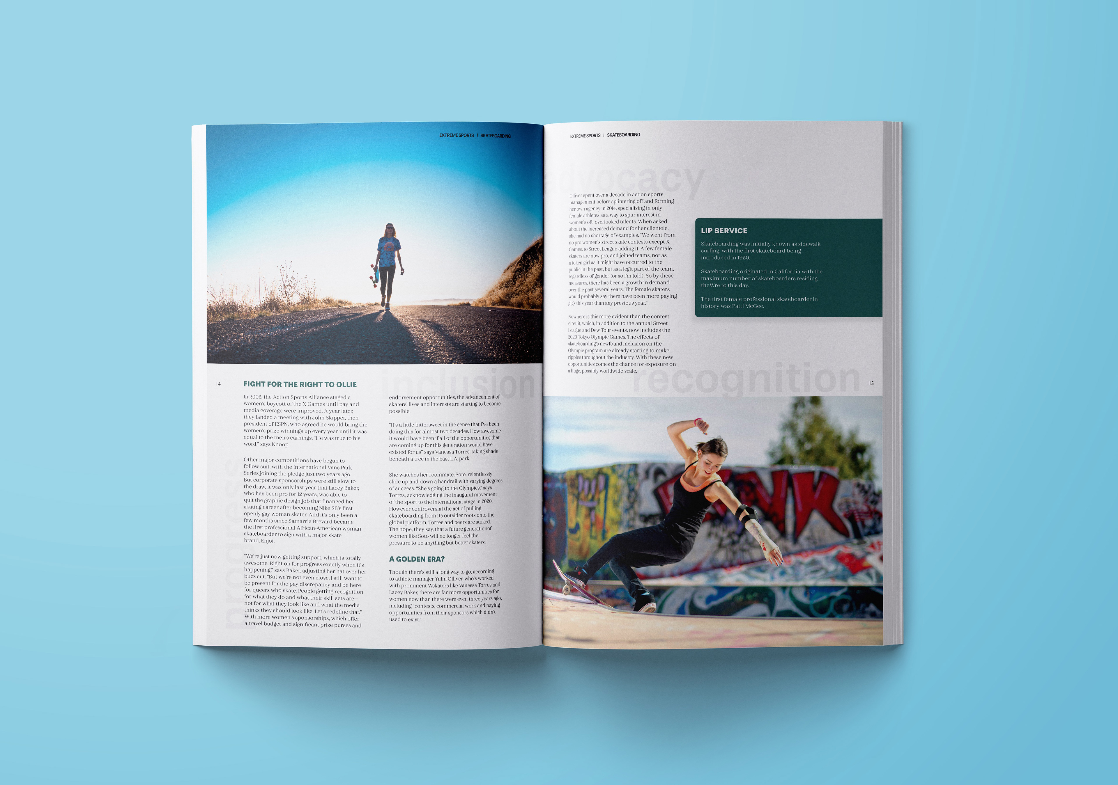 Editorial layout for a sports magazine— an original, return-to-roots publication centered on narrative within the realm of extreme sports. The magazine had lost its authenticity and unique essence over time due to commercialization. The client sought a rejuvenated and authentic approach to reconnect with its core readership.
